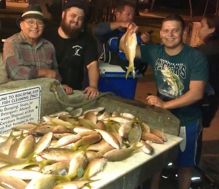 Enjoy a relaxing atmosphere anchored offshore. See the coastal lights while fishing for Snappers, Yellow tail, Mutton snapper, ETC. Our crew will keep you up to date on fishing regulations.